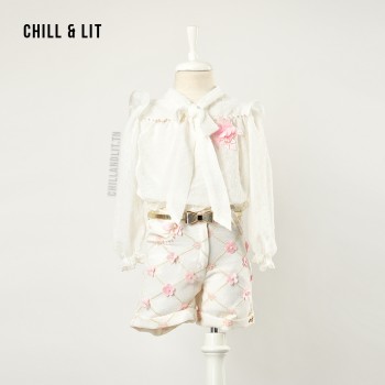 Ensemble Fillette 5 Pièces Chemise + Short Avec Ceinture + Serre Tète + Collant