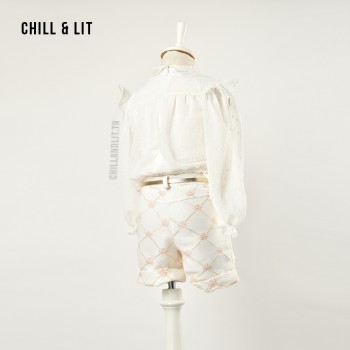 Chill&Lit Vous Propose Un Ensemble Fillette 5 Pièces Chemise + Short Avec Ceinture + Serre Tète + Collant. Taille Dans La Photo: 6ans.