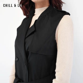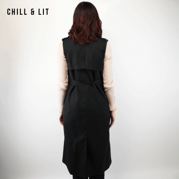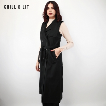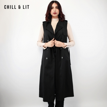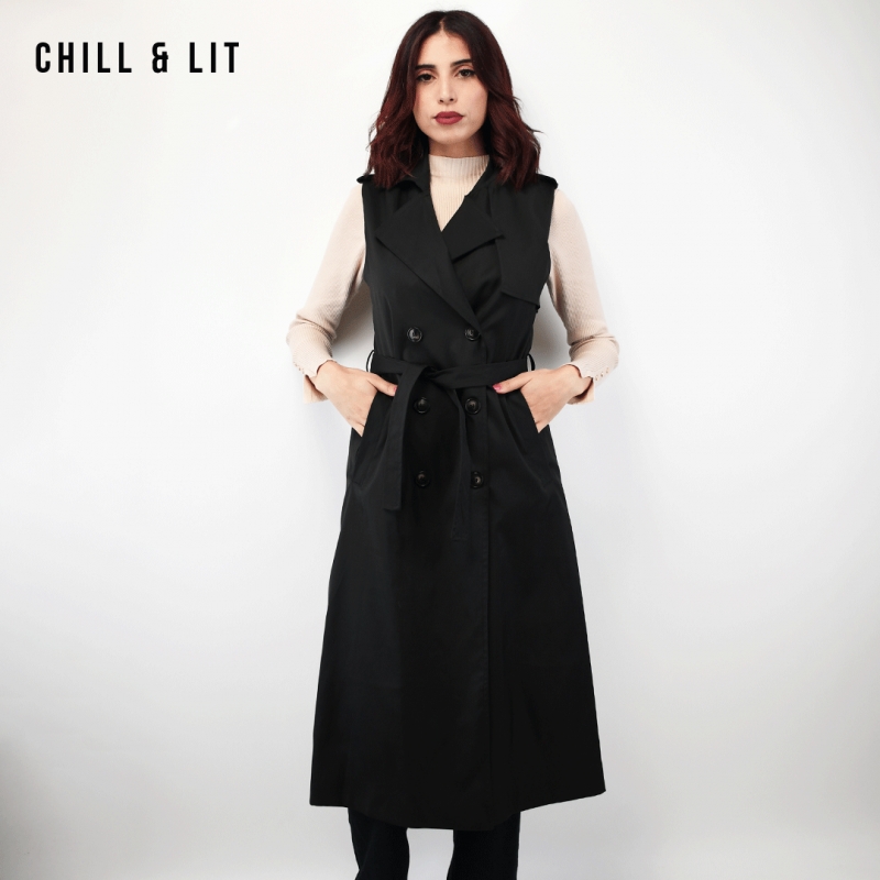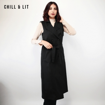 Trench Femme Long sans Manches, Col Revers, avec 2 Poches et Ajustables avec Ceinture de la Même Tissu, Fermeture Croisée par Boutons sur le devant . Hyper Tendance cet Hiver. Le Mannequin Porte La Taille 36 et Mesure 1m78.