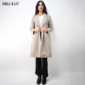 Manteau Cachemire Femme avec 2 Poches et Ceinture à la Taille Hyper Tendance cet Hiver. Le Mannequin Porte La Taille M et Mesure 1m78.