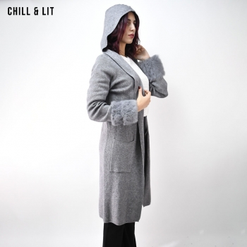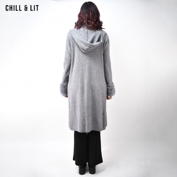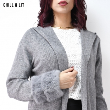 Gilet En Laine Avec Capuche, Manches en Fourrure et deux Poches. Le mannequin porte la taille S/M .Le Mannequin Mesure:1m78