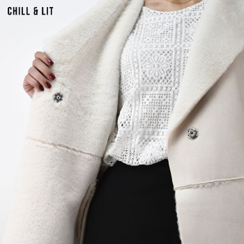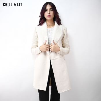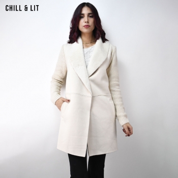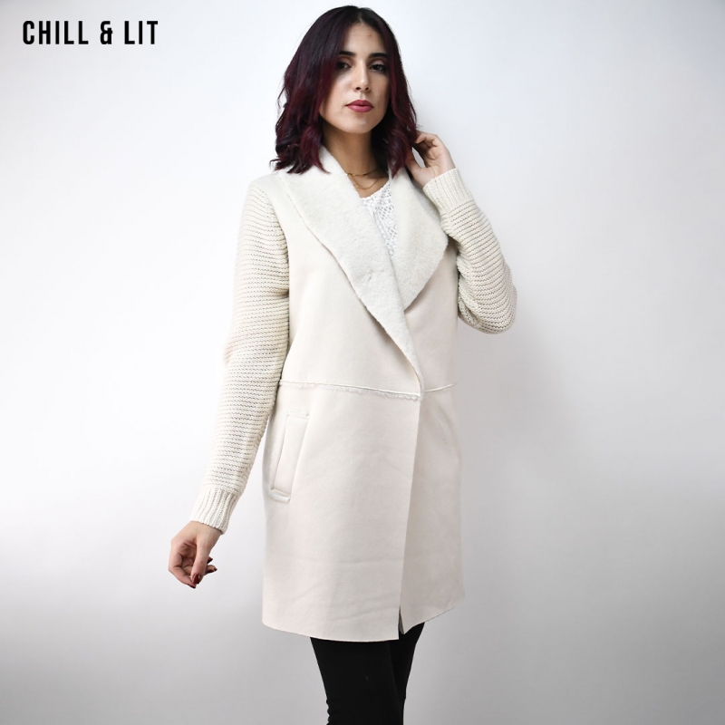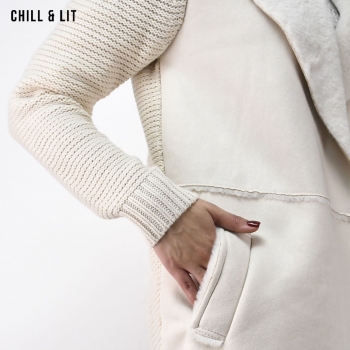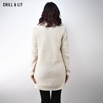 Gilet En Laine pour Femme  , Manches Longues et deux Poches. Le mannequin porte la taille 42 .Le Mannequin Mesure:1m78