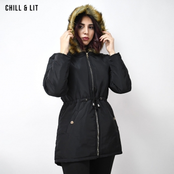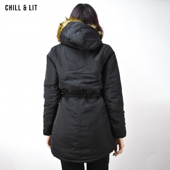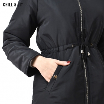 Bombers Femme Imperméable Avec Capuche, 2 Poches avec Fermeture Glissière Femme Rembourré Hyper Tendance cet Hiver. Le Mannequin Porte La Taille 1 et Mesure 1m78.