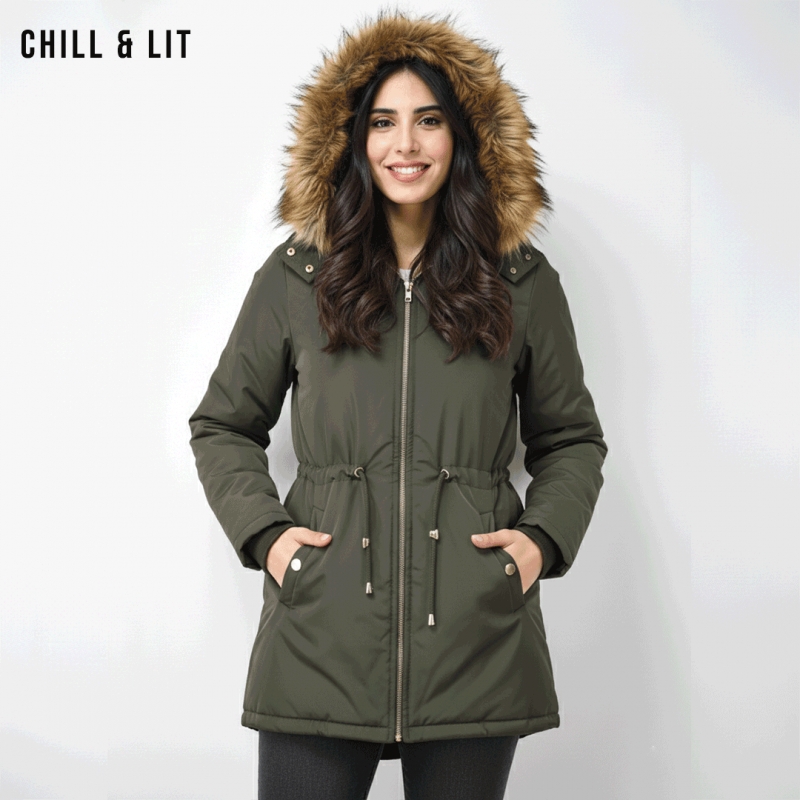 Bombers Femme Imperméable Avec Capuche, 2 Poches avec Fermeture Glissière Femme Rembourré Hyper Tendance cet Hiver. Le Mannequin Porte La Taille 1 et Mesure 1m78.