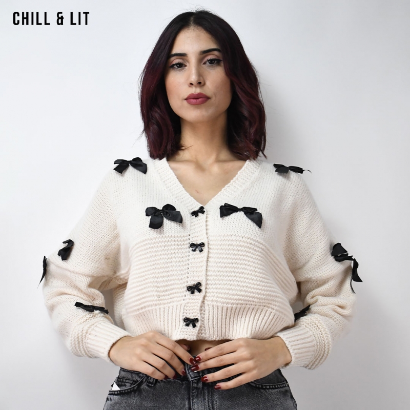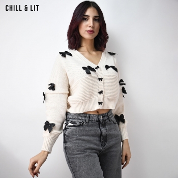 Gilet Court Oversize en Laine pour Femme, Orné d’appliques Papillons avec Manches larges. Hyper Tendance. Mannequin Porte La Taille Standard .