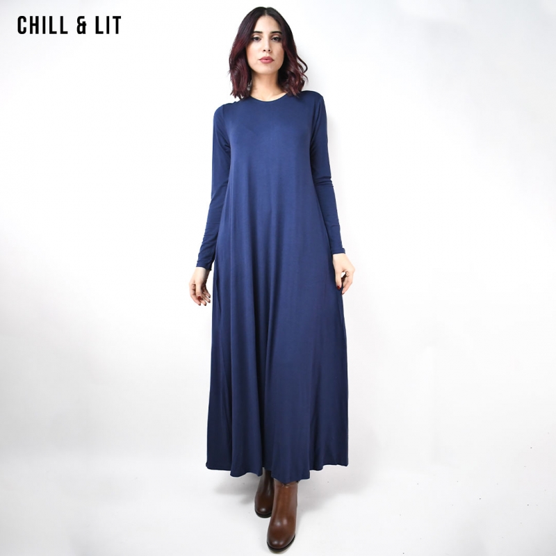Robe Longue pour Femme , Avec Manches Longues et Col Rond  Hyper Tendances .