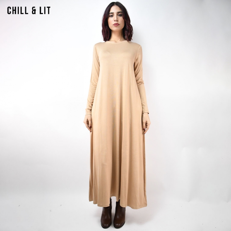 Robe Longue pour Femme , Avec Manches Longues et Col Rond  Hyper Tendances .