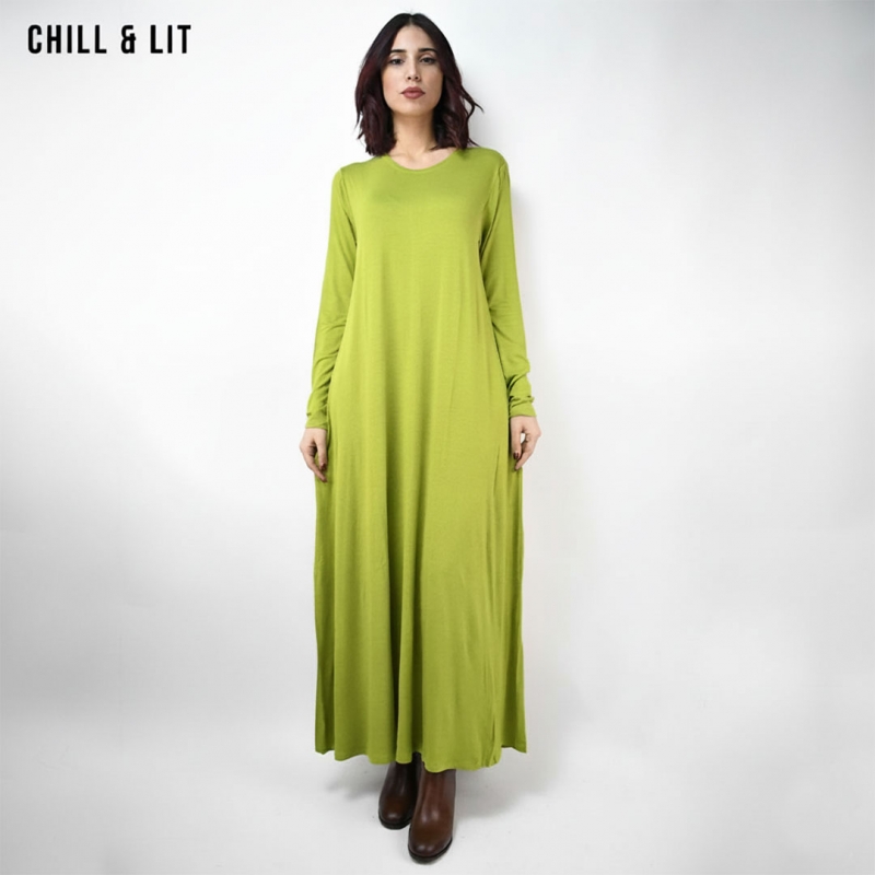 Robe Longue pour Femme , Avec Manches Longues et Col Rond  Hyper Tendances .