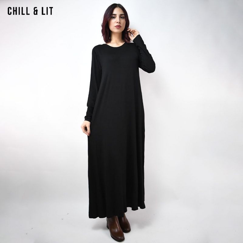 Robe Longue pour Femme , Avec Manches Longues et Col Rond  Hyper Tendances .