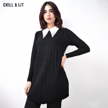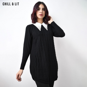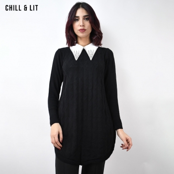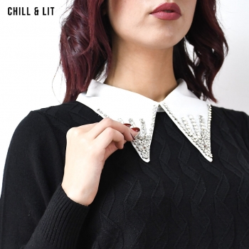 Robe pour Femme , Avec Manches Longues, et Col chemise à Strass . Hyper Tendances . Le Mannequin Porte La Taille Standard.