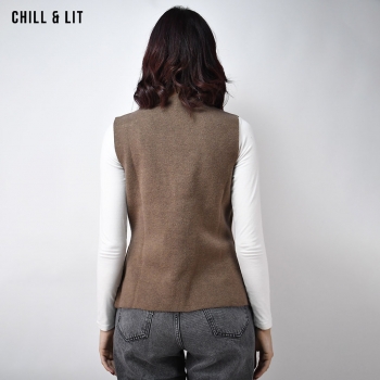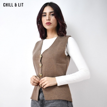 Gilet en Laine pour Femme, sans Manches, avec Boutons en Forme de Cœur en Acier Inoxydable. Hyper Tendance Cet Hiver . Mannequin Porte La Taille Standard .