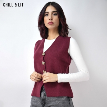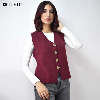 Gilet en Laine pour Femme, sans Manches, avec Boutons en Forme de Cœur en Acier Inoxydable. Hyper Tendance Cet Hiver . Mannequin Porte La Taille Standard .