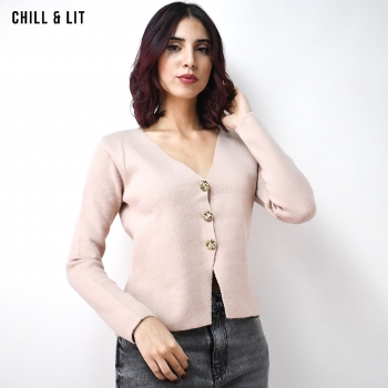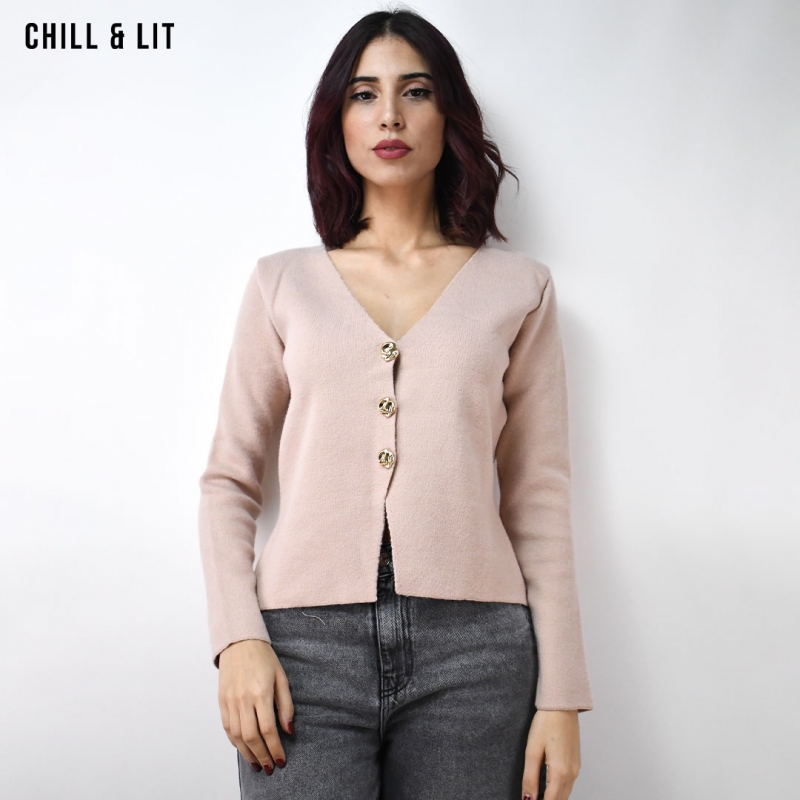 Gilet en Laine pour Femme, avec Manches Longues et Boutons en Forme de Fleur en Acier Inoxydable. Hyper Tendance Cet Hiver . Mannequin Porte La Taille Standard .
