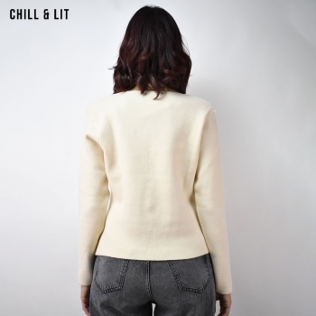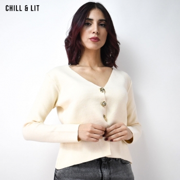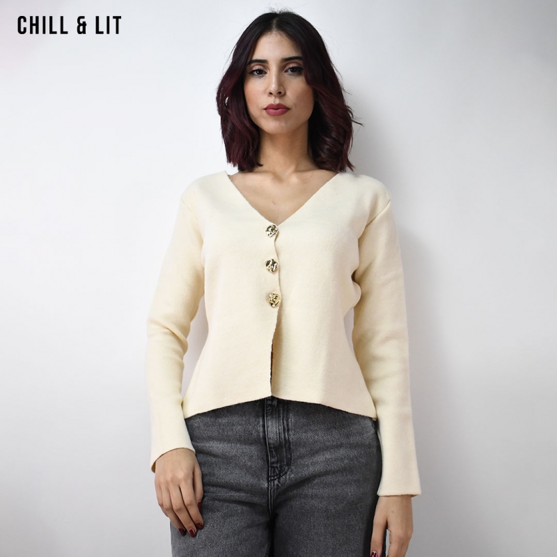 Gilet en Laine pour Femme, avec Manches Longues et Boutons en Forme de Fleur en Acier Inoxydable. Hyper Tendance Cet Hiver . Mannequin Porte La Taille Standard .