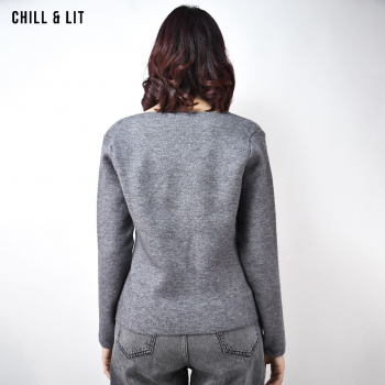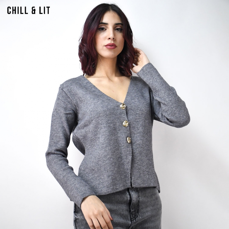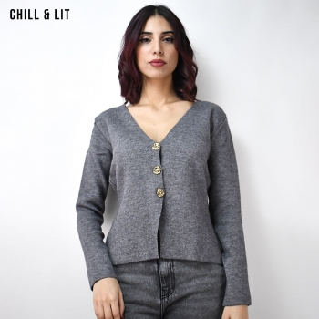 Gilet en Laine pour Femme, avec Manches Longues et Boutons en Forme de Fleur en Acier Inoxydable. Hyper Tendance Cet Hiver . Mannequin Porte La Taille Standard .