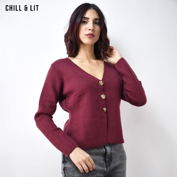Gilet en Laine pour Femme, avec Manches Longues et Boutons en Forme de Fleur en Acier Inoxydable. Hyper Tendance Cet Hiver . Mannequin Porte La Taille Standard .