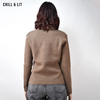 Gilet en Laine pour Femme, avec Manches Longues et Boutons en Forme de Fleur en Acier Inoxydable. Hyper Tendance Cet Hiver . Mannequin Porte La Taille Standard .