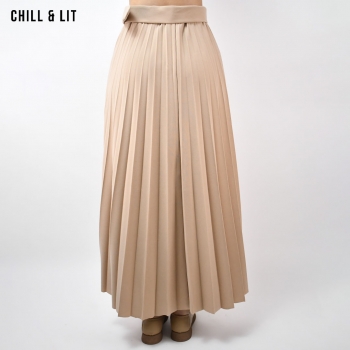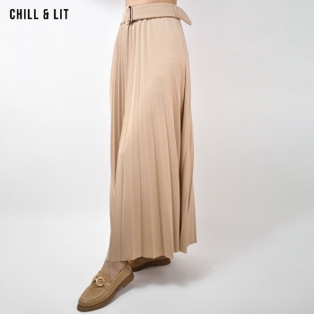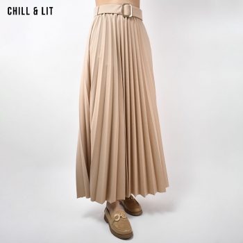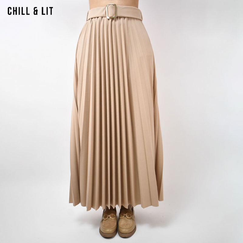 Jupe Plissée Femme avec Taille En Elastique et Ceinture à Boucle Inoxydable. Le mannequin porte la taille Standard. Le Mannequin Mesure:1m78