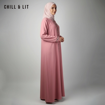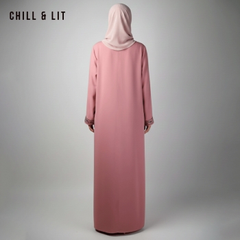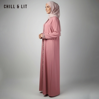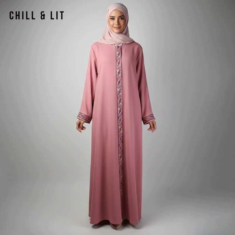 Jilbeb Long Bordé, avec des Manches Longues, Fermeture Glissière . Le mannequin porte la taille 42 .Le Mannequin Mesure:1m78