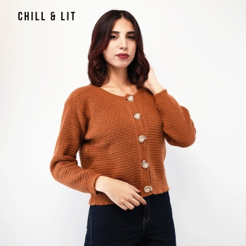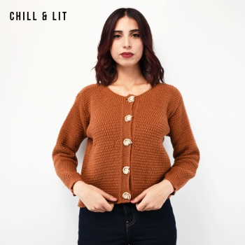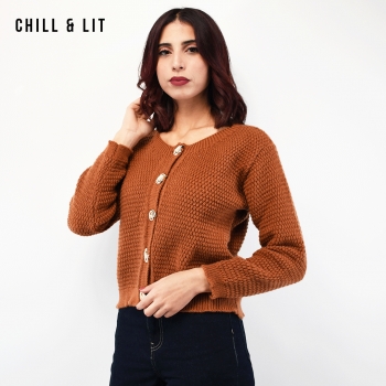 Gilet en Laine pour Femme, avec Manches Longues et Boutons en Forme de Coquillage en Acier Inoxydable. Hyper Tendance Cet Hiver . Mannequin Porte La Taille Standard.