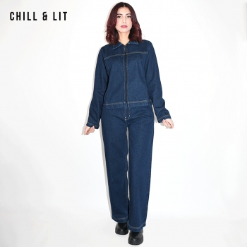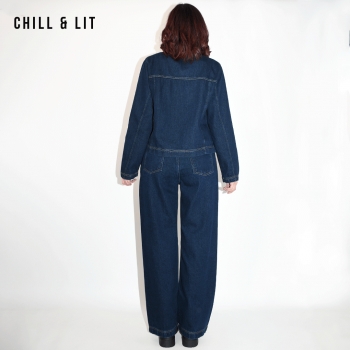 Ensembles Jean Femme, Veste Courte en jean et fermeture Glissière + Pantalon Jean Large Taille Haute. Un look moderne, tendance et stylé. Le Mannequin porte la taille 38. Le Mannequin Mesure:1m78.