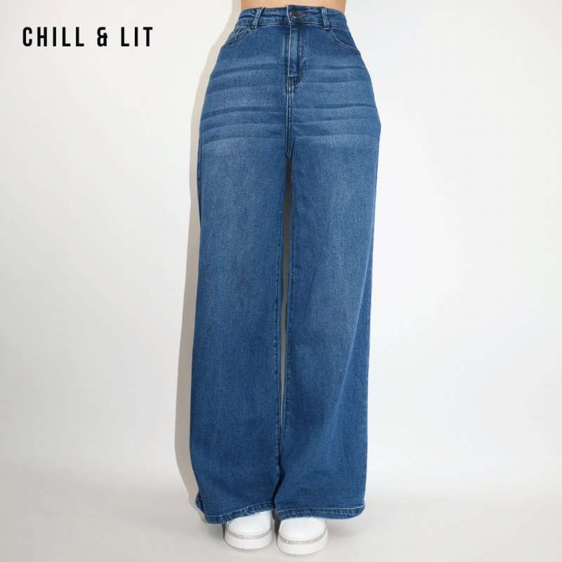 Pantalon Jean Femme Coupe Large, Taille Haute. Super Tendance en ce Moment. Le mannequin porte la taille 38. Le Mannequin Mesure:1m75