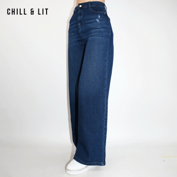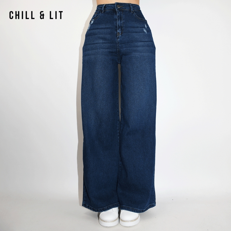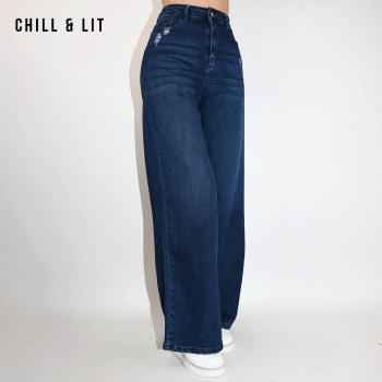 Pantalon Jean Déchiré pour Femme Coupe Large, Taille Haute. Super Tendance en ce Moment. Le mannequin porte la taille 36. Le Mannequin Mesure:1m75