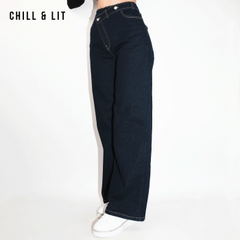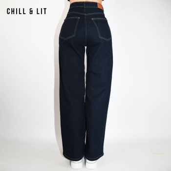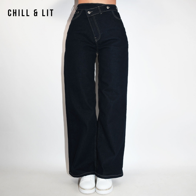 Pantalon Jean Femme Coupe Large avec fermeture croisée, Taille Haute. Super Tendance en ce Moment. Le mannequin porte la taille 38. Le Mannequin Mesure:1m75.