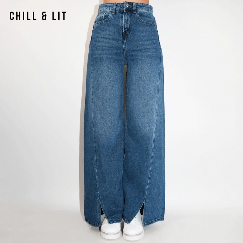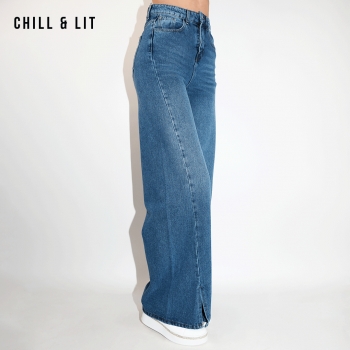 Pantalon Jean Femme Coupe Large avec fonte au style moderne et élégant, Taille Haute. Super Tendance en ce Moment. Le mannequin porte la taille 36. Le Mannequin Mesure:1m75.