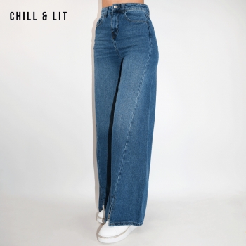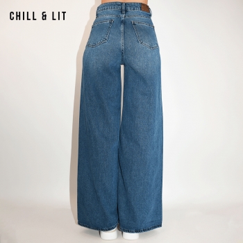Pantalon Jean Femme Coupe Large avec fonte au style moderne et élégant, Taille Haute. Super Tendance en ce Moment. Le mannequin porte la taille 36. Le Mannequin Mesure:1m75