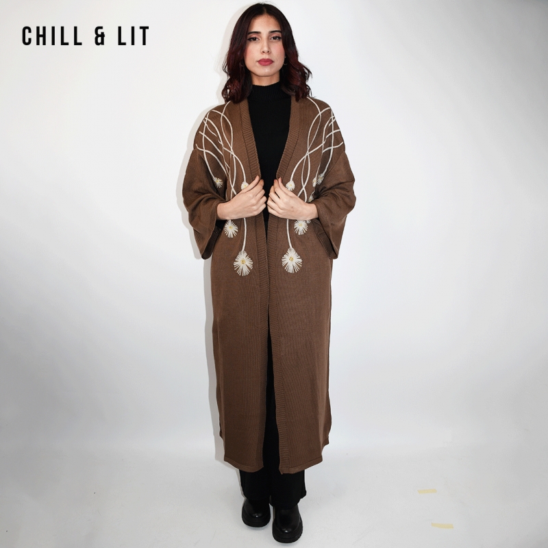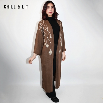 Gilet Long Bordé en Laine pour Femme avec Manches Longues. Super Tendance cet Hiver. Le Mannequin Porte La Taille Standard et Mesure 1m78.
