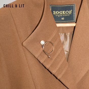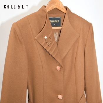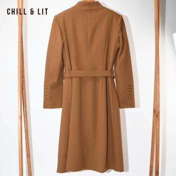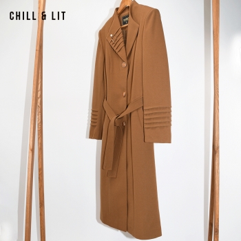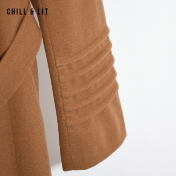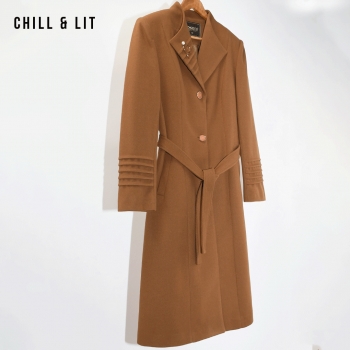 Manteau en Cachemire pour Femme avec Ceinture, une Broche en Acier Inoxydable, deux poches, Fermeture à Boutons. Hyper Tendance cet Hiver. Le Mannequin Porte La Taille 40 et Mesure 1m78.