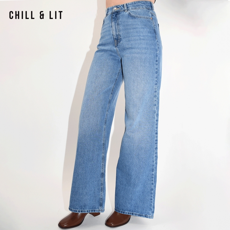Pantalon Jean Femme Coupe Large au style moderne et élégant, Taille Haute. Super Tendance en ce Moment. Le mannequin porte la taille 36. Le Mannequin Mesure:1m75.