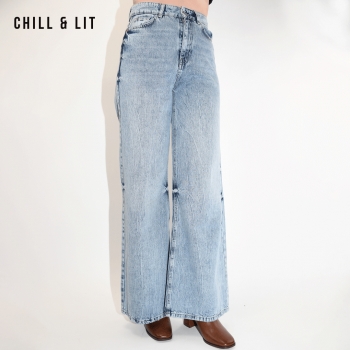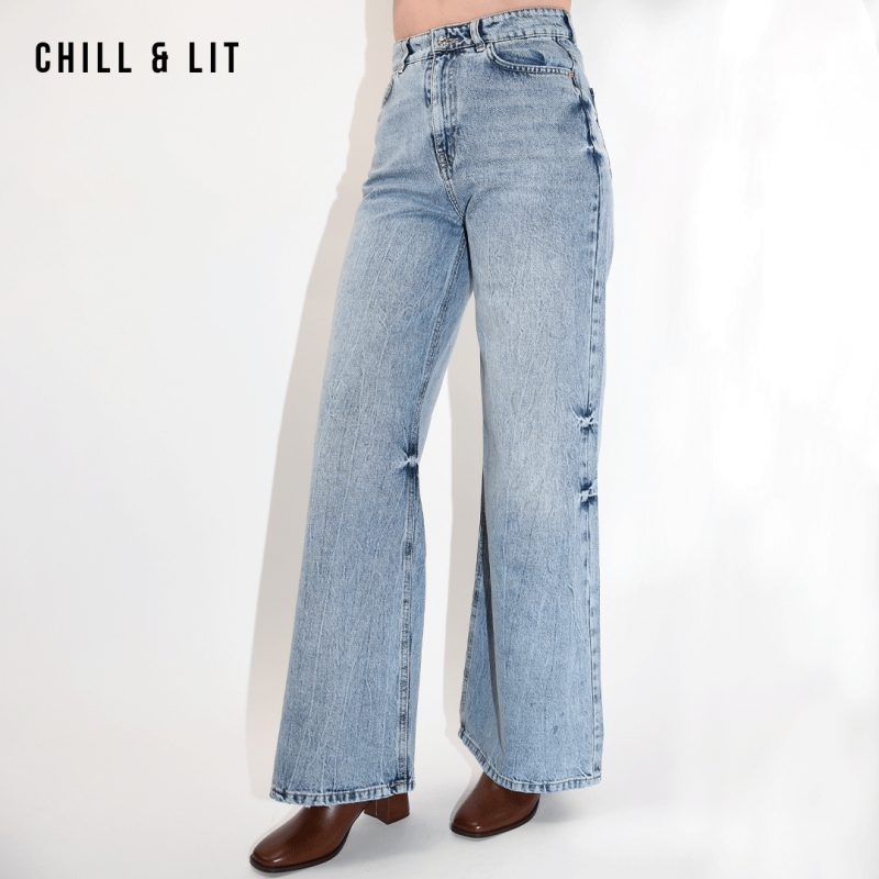 Pantalon Jean Femme Coupe Large au style moderne et élégant, Taille Haute. Super Tendance en ce Moment. Le mannequin porte la taille 36. Le Mannequin Mesure:1m75.