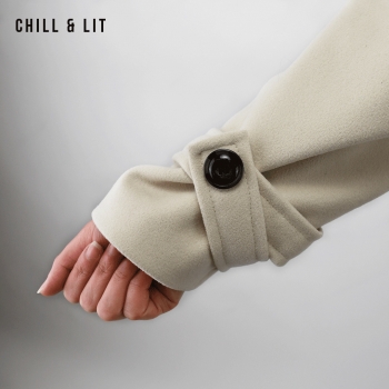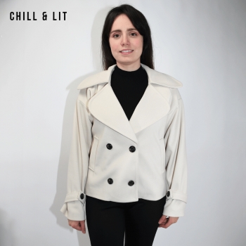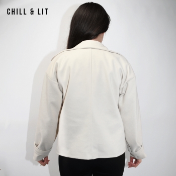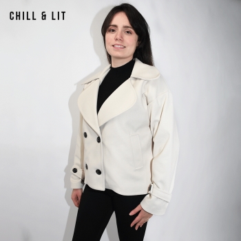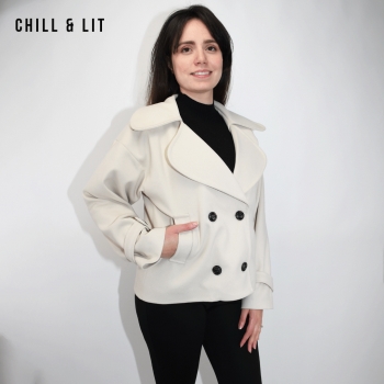 Veste femme en cachemire avec fermeture à boutons, Deux poches. Très tendance cet hiver. Le mannequin porte une taille 38 et mesure 1,78 m.