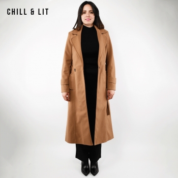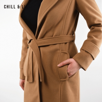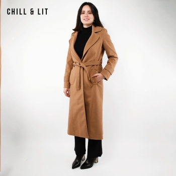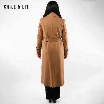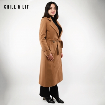 Manteau en Cachemire avec Doublure pour Femme, deux poches, avec Ceinture, Fermeture à Bouton. Hyper Tendance cet Hiver. Le Mannequin Porte La Taille 38 et Mesure 1m78.