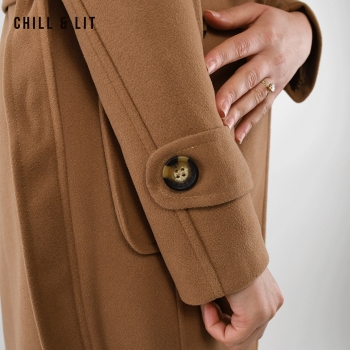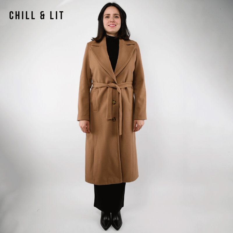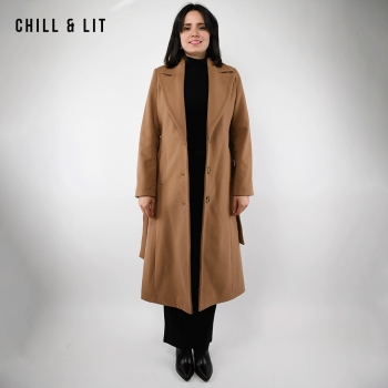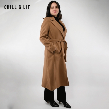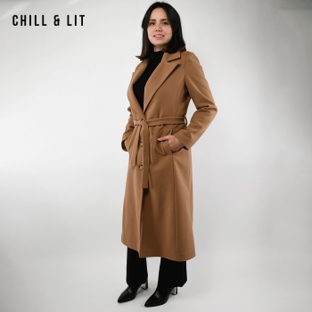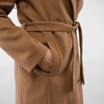 Manteau en Cachemire avec Doublure pour Femme, deux poches, avec Ceinture, Fermeture à Boutons. Hyper Tendance cet Hiver. Le Mannequin Porte La Taille 38 et Mesure 1m78.