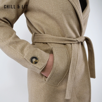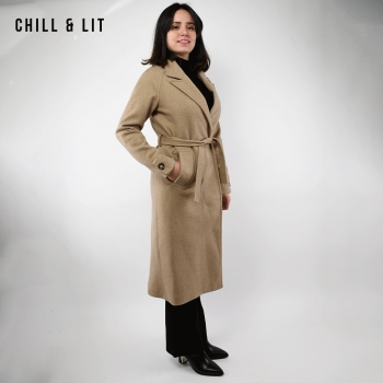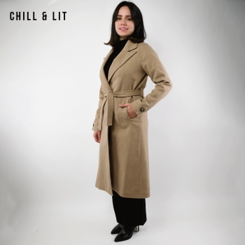 Manteau en Cachemire avec Doublure pour Femme, deux poches, avec Ceinture. Hyper Tendance cet Hiver. Le Mannequin Porte La Taille 36 et Mesure 1m78.