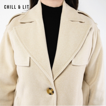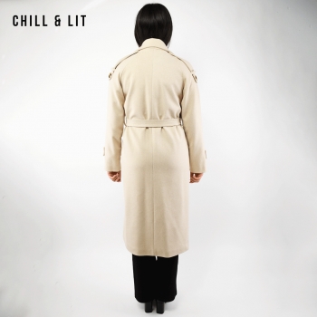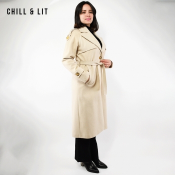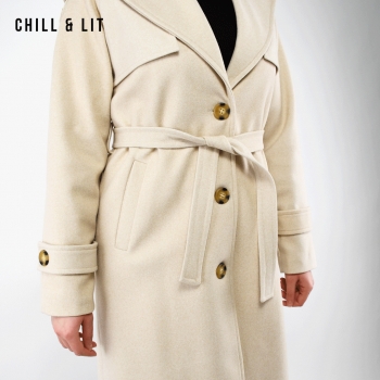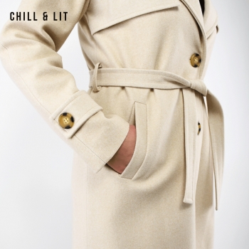Manteau en Cachemire avec Doublure pour Femme, deux poches, avec Ceinture, Fermeture à Boutons. Hyper Tendance cet Hiver. Le Mannequin Porte La Taille 36 et Mesure 1m78.