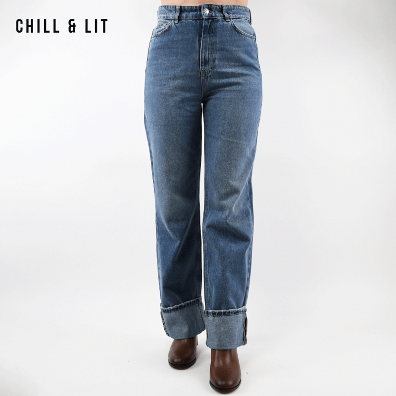 Pantalon Jean Femme Coupe Large. Très Tendance en ce Moment. Le mannequin porte la taille 38. Le Mannequin Mesure:1m70.