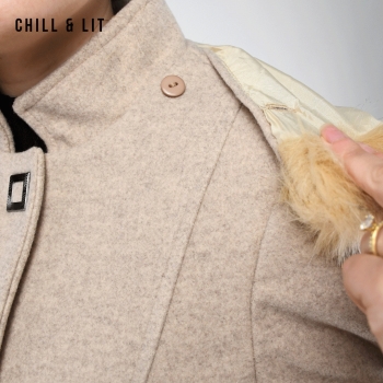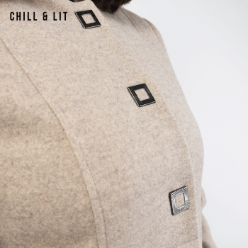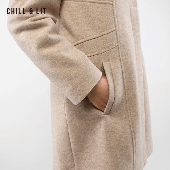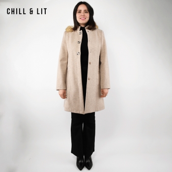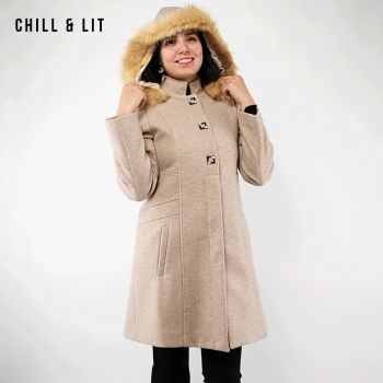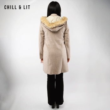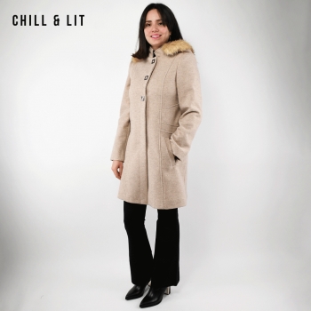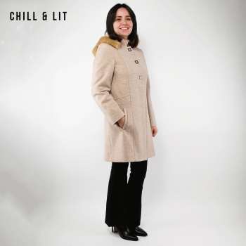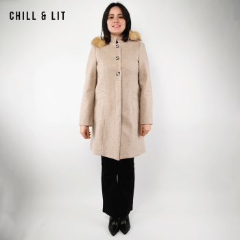 Manteau en Cachemire avec Capuche Amovible pour Femme, deux poches, avec Ceinture, Fermeture à Boutons. Hyper Tendance cet Hiver. Le Mannequin Porte La Taille 40et Mesure 1m78.