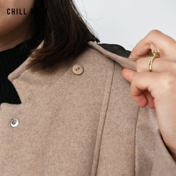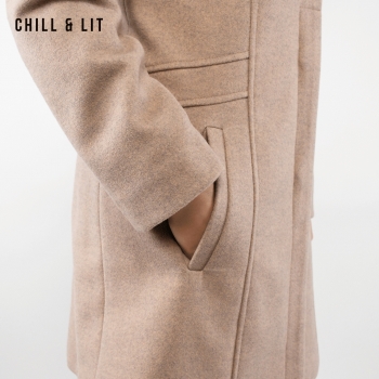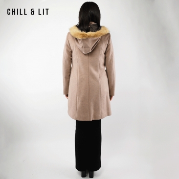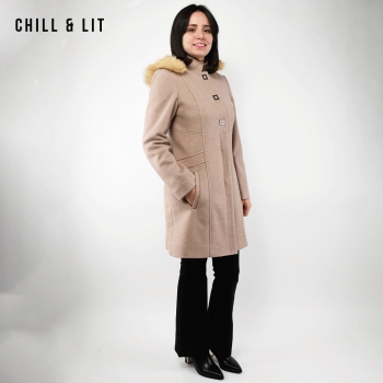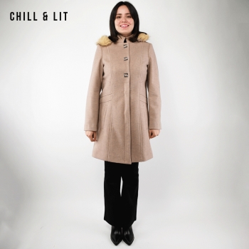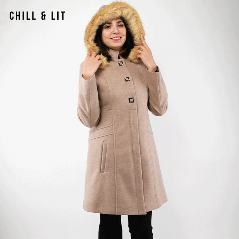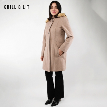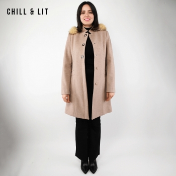 Manteau en Cachemire avec Capuche Amovible pour Femme, deux poches, avec Ceinture, Fermeture à Boutons. Hyper Tendance cet Hiver. Le Mannequin Porte La Taille 40et Mesure 1m78.