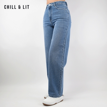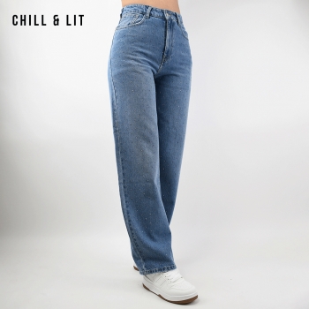 Jean Large Femme Avec Strass. Coupe Large. Très Tendance en ce Moment. Le mannequin porte la taille 36. Le Mannequin Mesure:1m78.