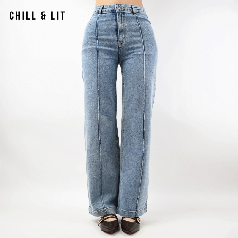 Jean Large pour Femme avec Strass. Coupe Large. Très Tendance en ce Moment. Le mannequin porte la taille 36. Le Mannequin Mesure:1m78.