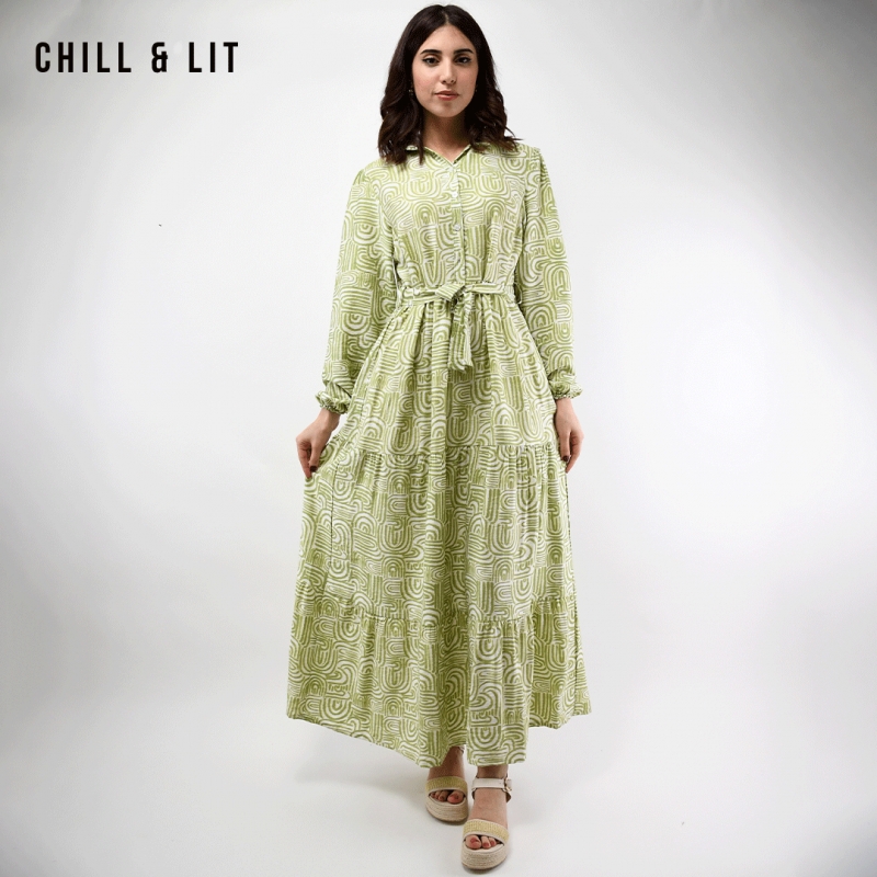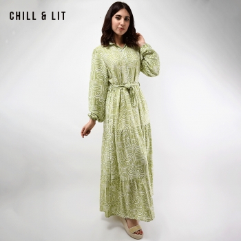 Robe Longue Raffinée au Style Féminin avec Manches Longues bouffantes qui apportent une Touche de Volume, Col Chemise, Avec ceinture . Fermeture à boutons sur le devant . élégante et confortable. Le mannequin porte la taille 42 .Le Mannequin Mesure:1m78.