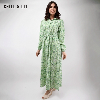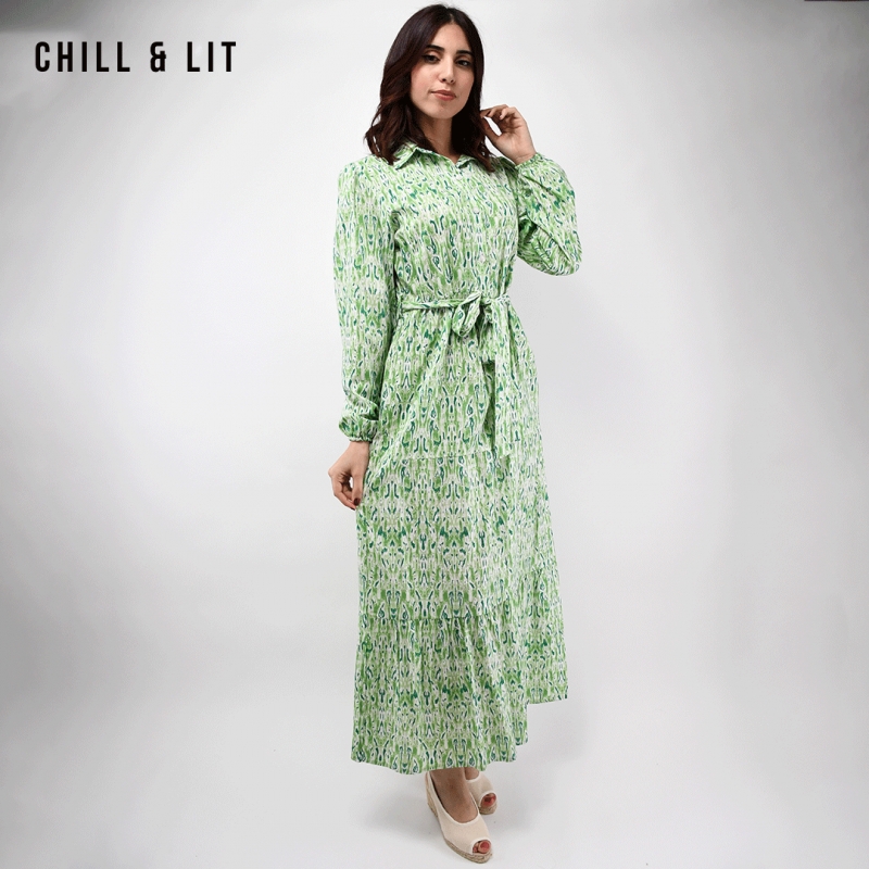 Robe Longue Raffinée au Style Féminin avec Manches Longues bouffantes qui apportent une Touche de Volume, Col Chemise, Avec ceinture . Fermeture à boutons sur le devant . élégante et confortable. Le mannequin porte la taille 40 .Le Mannequin Mesure:1m78.