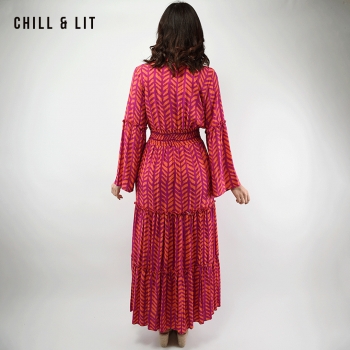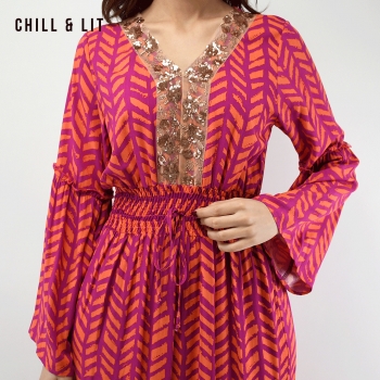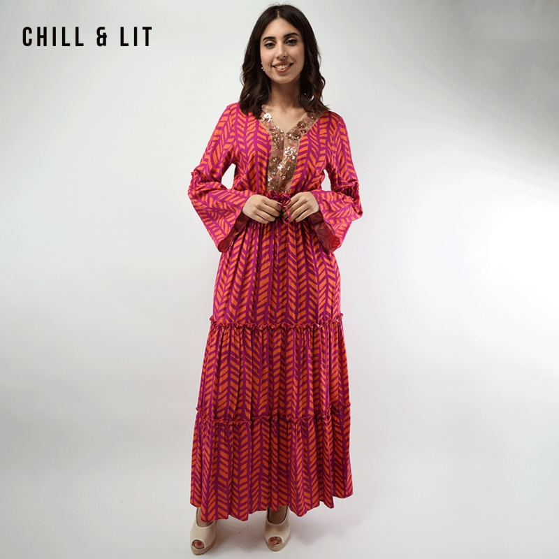 Robe Jebba Longue Raffinée au Style Féminin avec Manches Larges, Col V orné de Broderies. élégante et confortable. Le mannequin porte la taille S .Le Mannequin Mesure:1m78.
