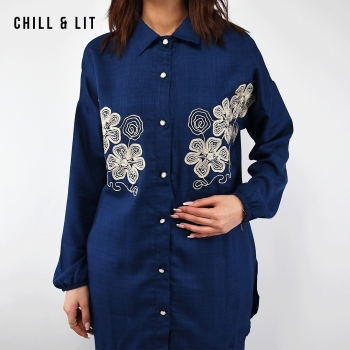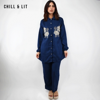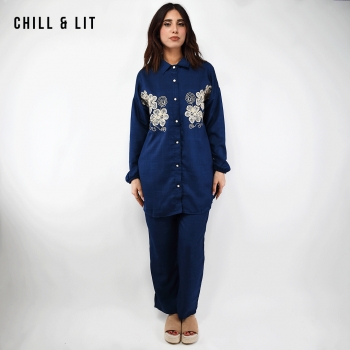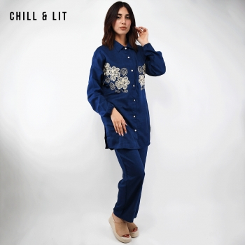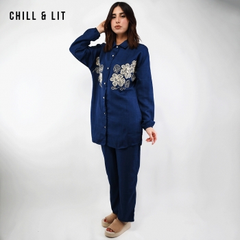Ensemble pour Femme Chic et Confortable, Composé d’une Chemise longue avec broderie et fermeture boutonnée + un Pantalon Large Assorti avec Cordon de serrage à la taille. Ensemble offre une coupe fluide et moderne, idéale pour allier élégance et confort au quotidien.