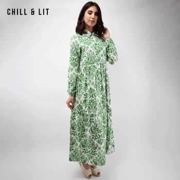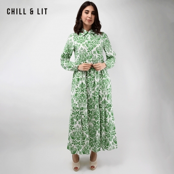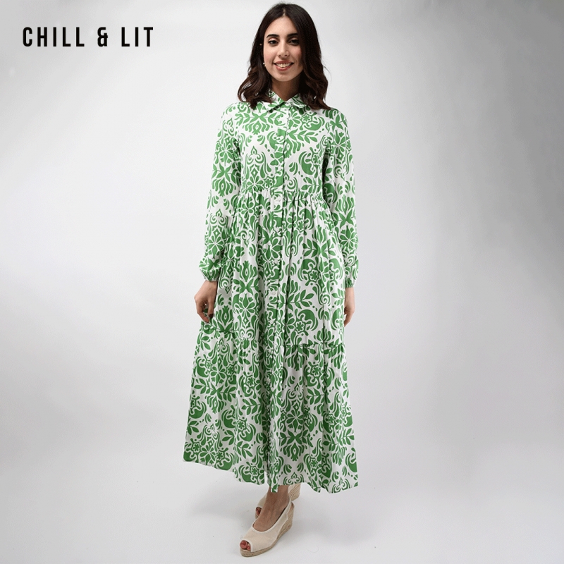Robe Longue avec manches Longues Col Chemise Hyper Tendances cet été. Le Mannequin Porte La Taille Standard.
