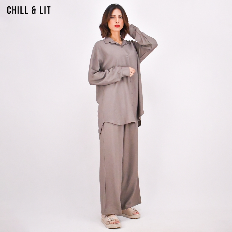 Ensembles Femme Chemise+ Pantalon Large Haute Super Tendance Cette Saison. Le mannequin porte la taille 38. Le Mannequin Mesure:1m78